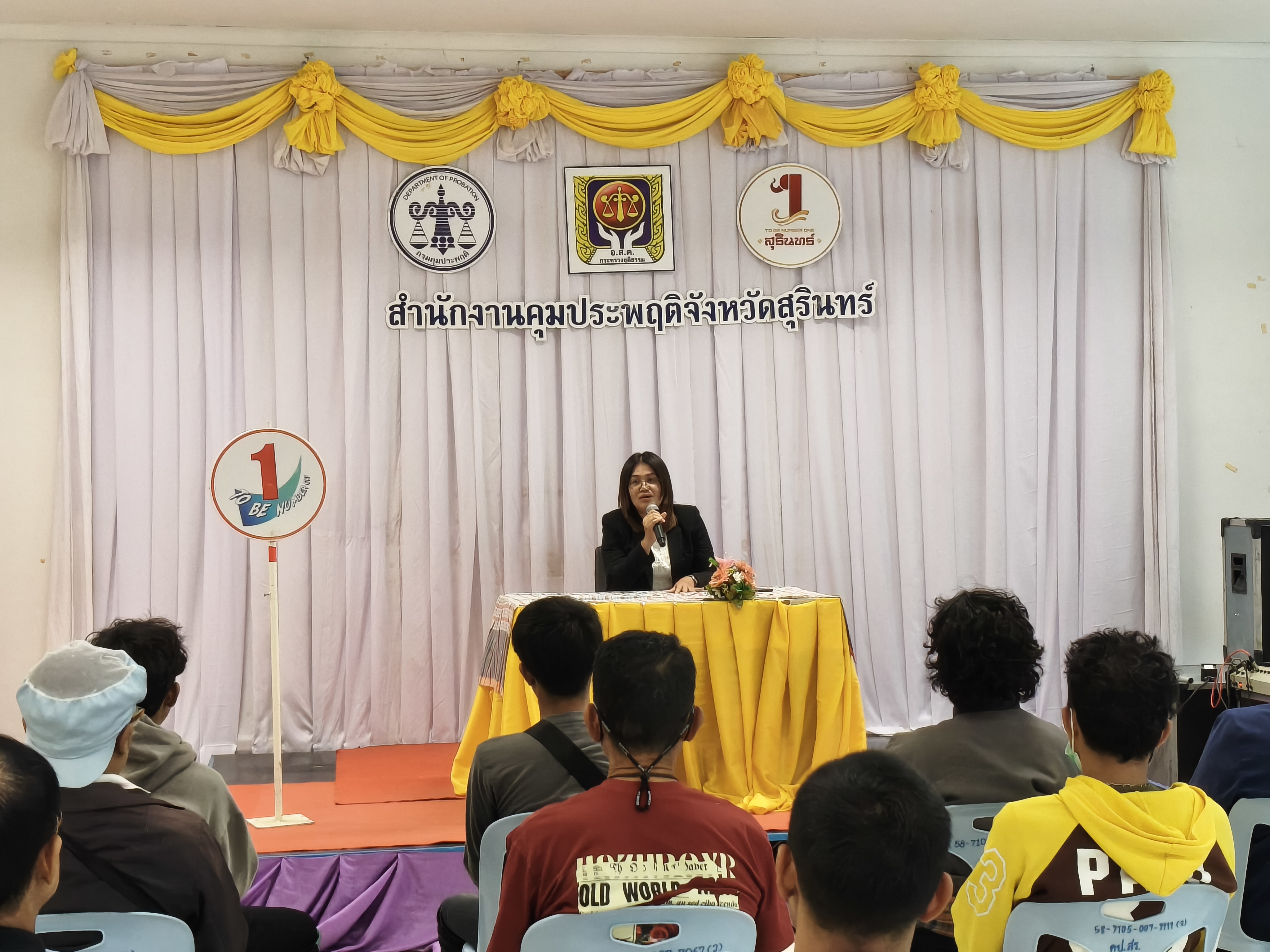 วันที่ 3 พฤศจิกายน 2568 ว่าที่ร้อยโท สิทธิ์ธนัตถ์ สิทธิบัวศรี ผู้อำนวยการสำนักงานคุมประพฤติจังหวัดสุรินทร์ มอบหมายให้ กลุ่มยุทธศาสตร์การคุมประพฤติ และกลุ่มคุมประพฤติพื้นที่ 2 จัดกิจกรรมปฐมนิเทศผู้ถูกคุมความประพฤติแบบกลุ่ม ครั้งที่ 5 ประจำปีงบประมาณ พ.ศ. 2569 ณ ห้องกิจกรรม ชั้น 2 สำนักงานคุมประพฤติจังหวัดสุรินทร์ ตำบลนอกเมือง อำเภอเมืองสุรินทร์ จังหวัดสุรินทร์ โดยมีวัตถุประสงค์เพื่อชี้แจงวัตถุประสงค์ของการคุมความประพฤติ วิธีการคุมความประพฤติ บริการที่อาจได้รับจากสำนักงานคุมประพฤติจังหวัดสุรินทร์ รวมทั้งผลที่จะได้รับจากการปฏิบัติตามเงื่อนไขและผลกระทบ ในการไม่ปฏิบัติตามเงื่อนไขจากการคุมความประพฤติ โดยมี นางสาวอำไพ วรรณแก้ว พนักงานคุมประพฤติชำนาญการ หัวหน้ากลุ่มคุมประพฤติพื้นที่ 2 เป็นผู้ดำเนินการปฐมนิเทศ และการประชาสัมพันธ์พร้อมทั้งรับสมัครสมาชิกชมรม TO BE NUMBER ONE สำนักงานคุมประพฤติจังหวัดสุรินทร์
